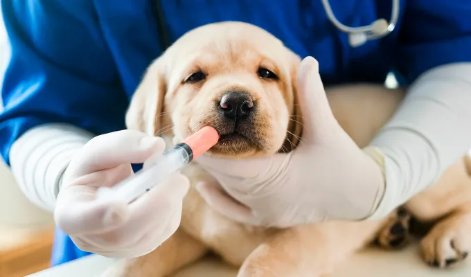 - The dosage depends on the puppy’s age and weight.